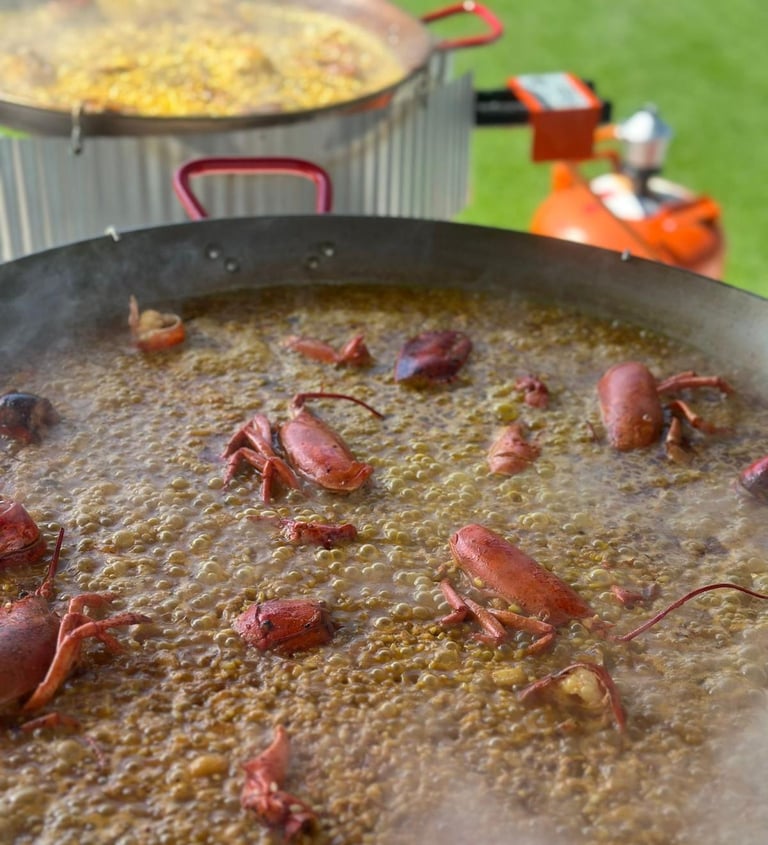 Disfruta con tus acompañantes del magnetismo de una paella cocinada en vivo